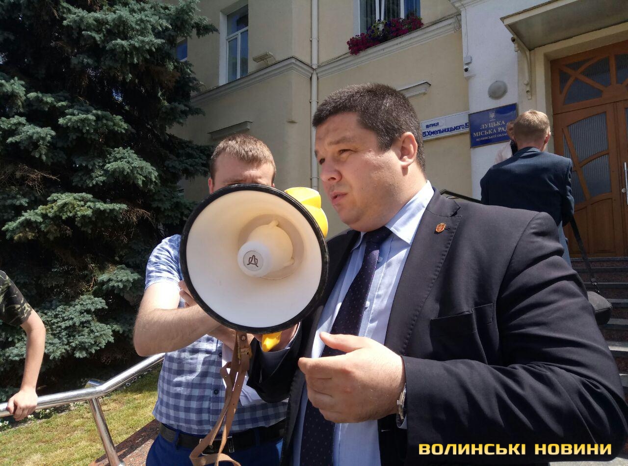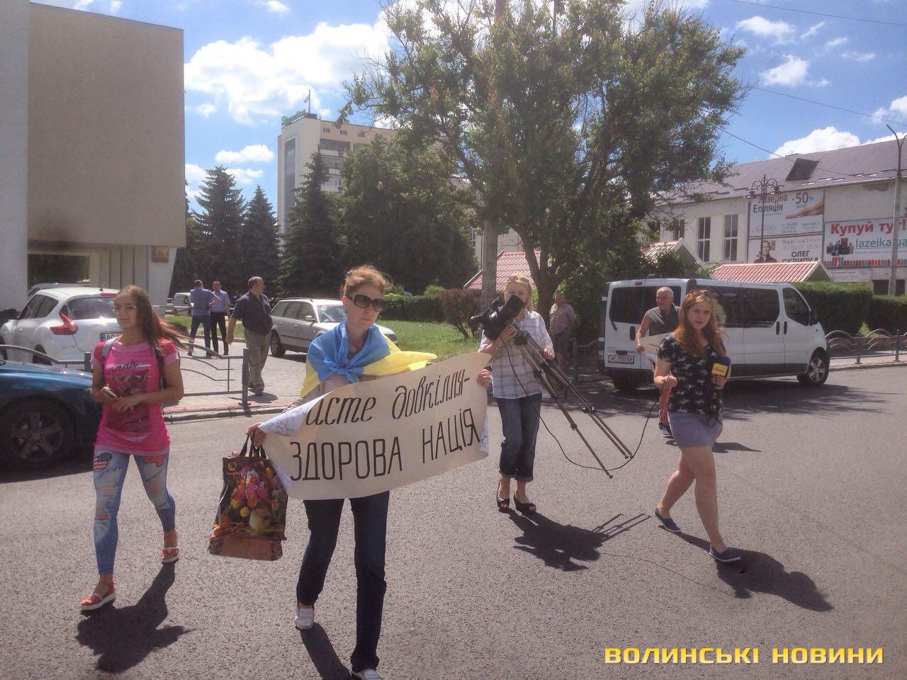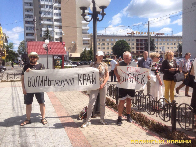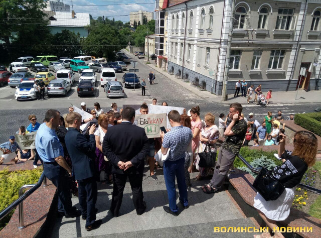 Щоправда, цікаво, що завод ТОВ «БІО ПЕК», який нібито і був причиною смороду у місті, і проти роботи якого протестують активісти, наразі не працює. Він припинив свою роботу ще у травні. Більше того, власники заводу за свої гроші поливають поля реагентами. Однак, неприємний запах періодично з`являється знову.Після акції під судом місцеві мешканці вирушили до міської ради з тими ж плакатами та вимогами. До людей вийшов заступник міського голови Костянтин Петрочук, який зауважив, що завод призупинив свою діяльність ще близько місяця тому, а знаходиться він не на території Луцька. Відтак в міської ради обмежені повноваження у вирішенні цього питання. Разом з тим, на численні звернення та заяви міської ради в профільних структурах так і не було належної реакції чи відповідь, а лише відписки.Присутні не повірили в це та зажадали доказів того, що робота зі сторони міськради щодо вирішення цього питання триває. У відповідь Петрочук запропонував ініціативній групі зайти в міськраду та ознайомитись з відповідними документами, проте ті відмовились і наразі стоять перед міськрадою.Нагадаємо, раніше повідомлялося, що Луцьк задихається від жахливого смороду, а екологічні служби жодним чином не реагують. Однією із версій запаху, який поширюється Луцьком, називали хімічну реакцію, в яку вступали відходи від виробництва біоетанолу з заводу ТОВ «БІО ПЕК» та нечистоти, які скидають на фільтраційні поля Гнідавського цукрового заводу з Гіркої Полонки та Вересневого.