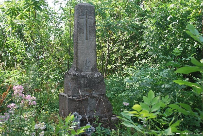 Справа від входу в храм залишилося два надмогильних пам’ятники. Віра Войтюк стверджує, що один із них поставили людям, які загинули під час масового розстрілу в’язнів Луцької тюрми в 1941 році. «А двоє навіть поховані», ‒ зазначила старенька.