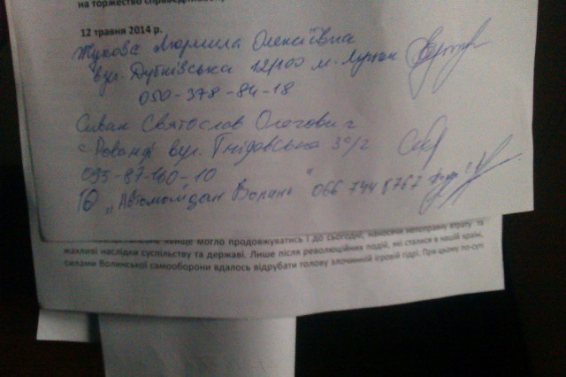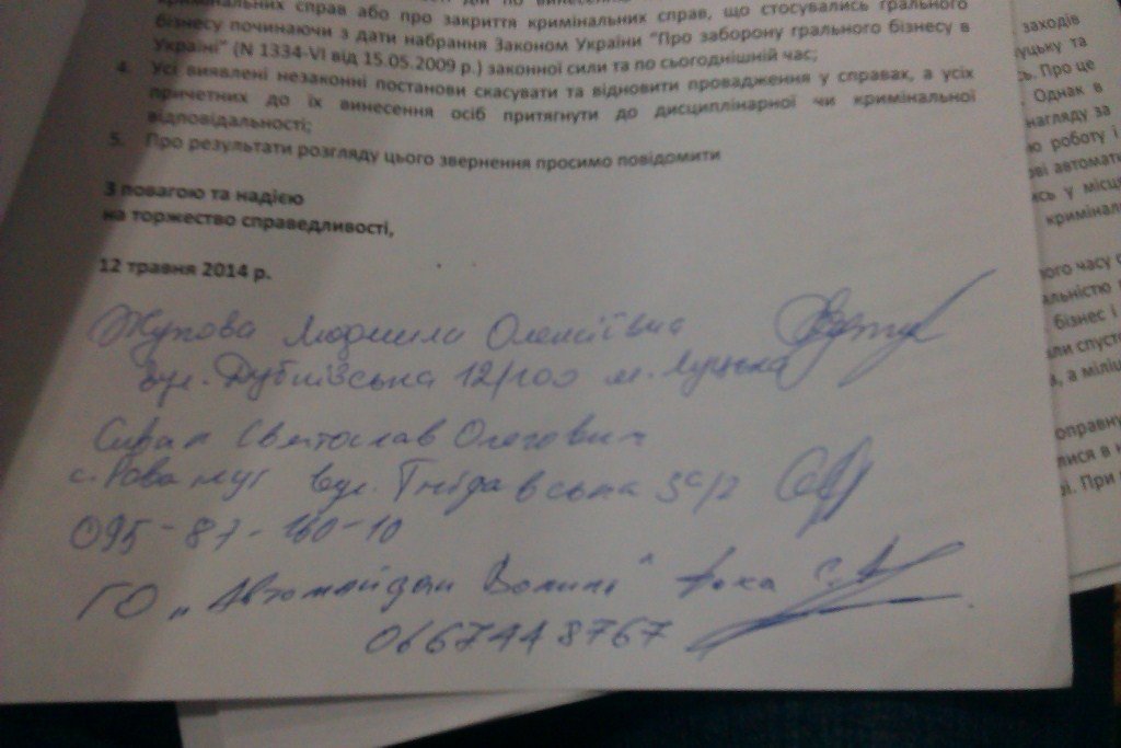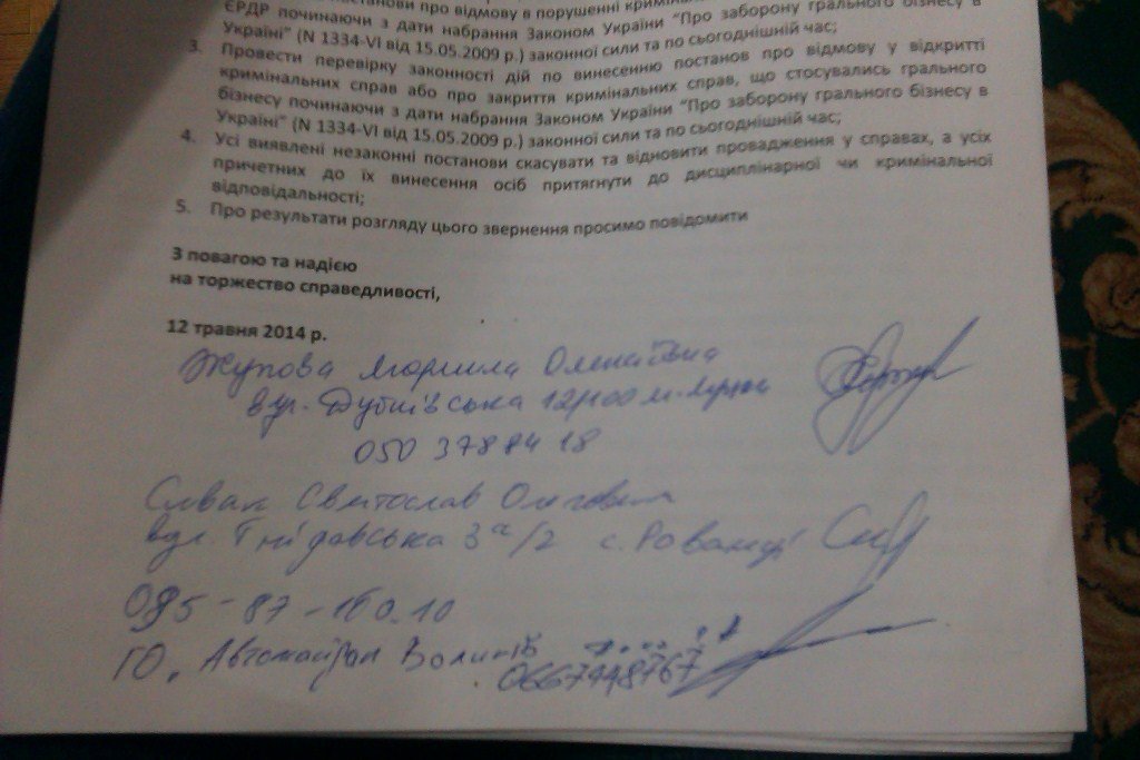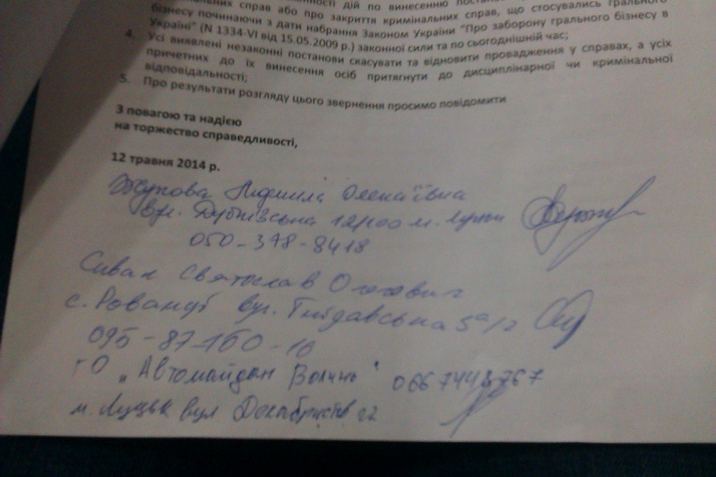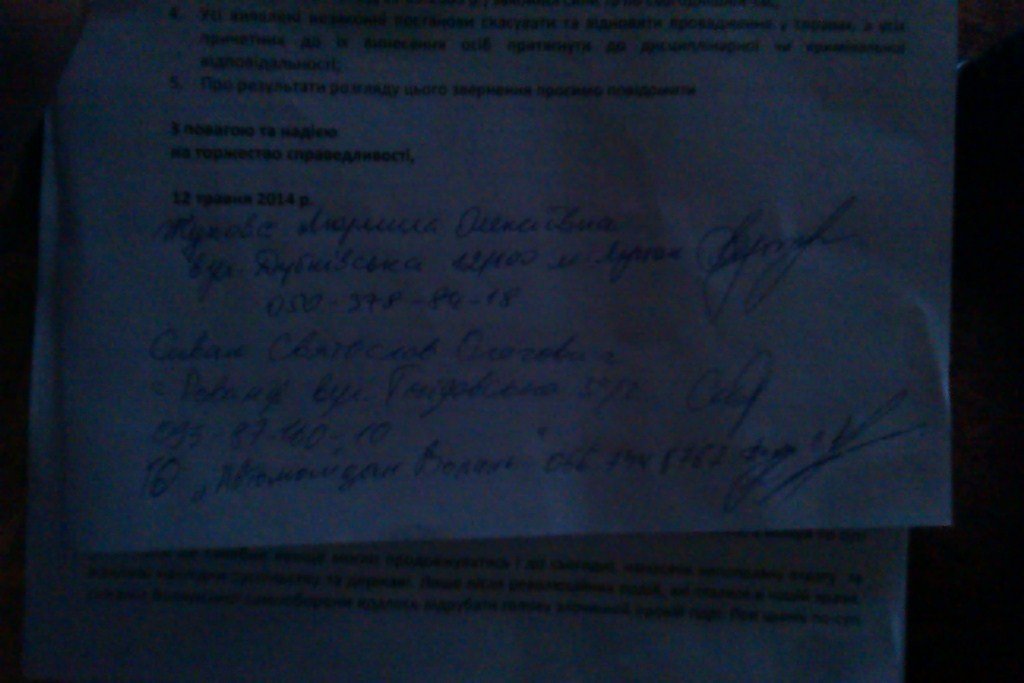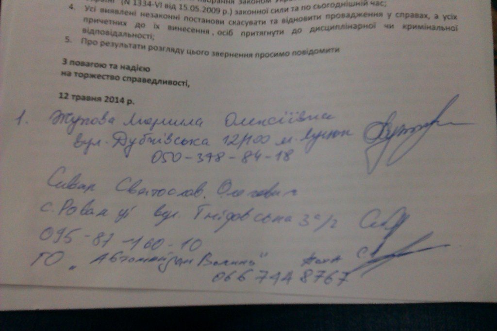 Переговорниками від активістів були Святослав Сивак та Сергій Поха. Прокурору області передали відповідне звернення. Також копії даного звернення відправлені Голові облдержадміністрації Григорію Пустовіту та голові облради Валентину Вітеру.