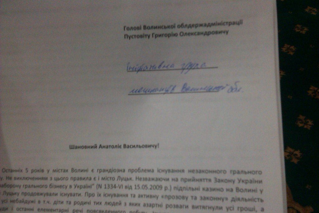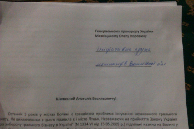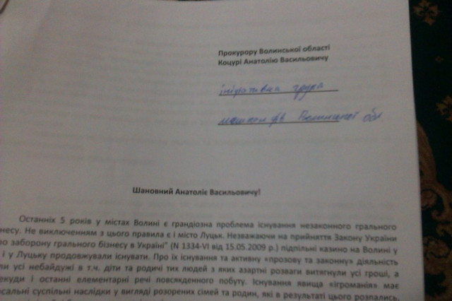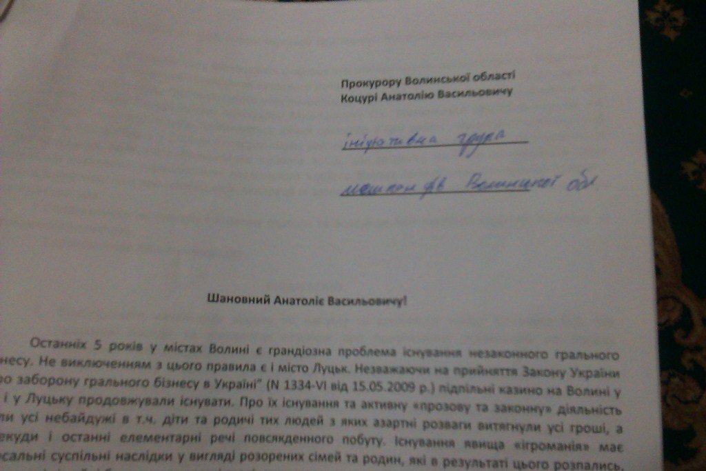 Під стінами волинської прокуратури в Луцьку сьогодні, 12 травня, відбувся пікет проти любіювання прокуратурою грального бізнесу.