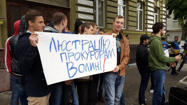 Так, ГО "Патріотичний Щит" та ГО "Автомайдан Волині" провели акцію з вимогою перевірити факти щодо "кришування" претендентом на посаду Любомльського міжрайонного прокурора Кравчуком Олександром, нелегального грального бізнесу. Акція зібрала понад 80 протестувальників.