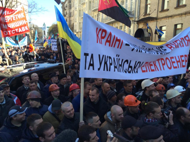 Шахтарі зібралися на мітинг під АП з вимогою повного погашення заборгованості по заробітній платі та спрямування коштів на підтримку і розвиток вугільної промисловості України.