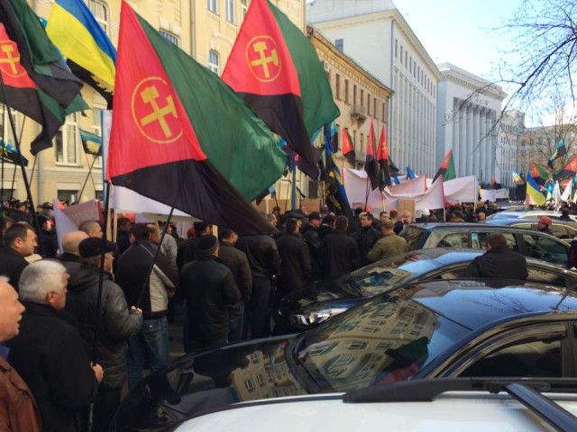 Крім того, через мітинг було перекрито вулицю Банкову.