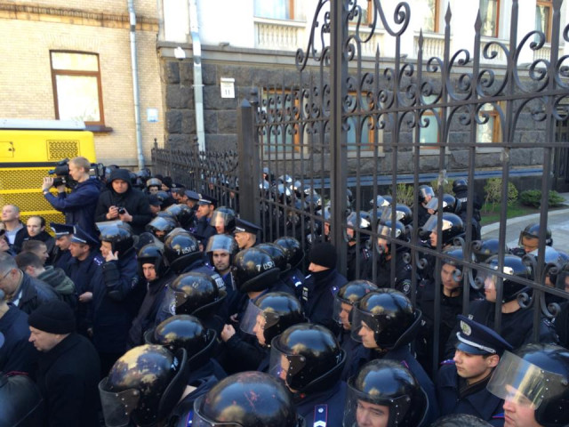 Охорону будівлі ВР було посилено додатковими підрозділами правоохоронців. Зокрема, біля центрального входу правоохоронці вишикувалися у три ряди.