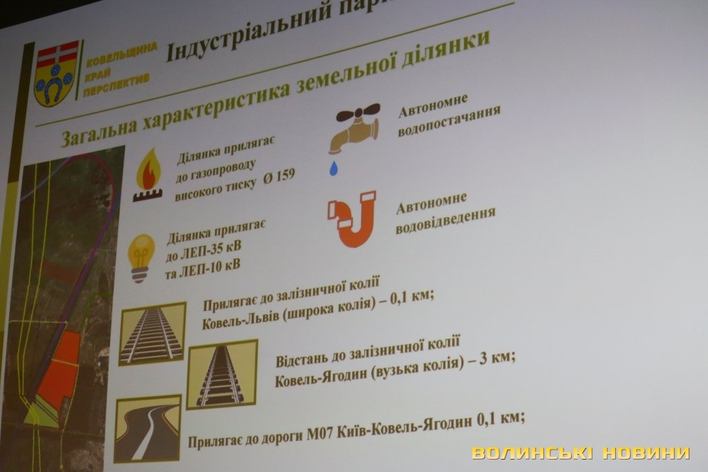 Голова Ковельської райдержадміністрації Віктор Козак розповів, що ідея створення індустріального парку існувала з 2007 року і вона може бути привабливою як для українських, так і для закордонних інвесторів. Він відзначив, що Ковель є географічним центром Волині, це значний залізничний вузол, місто має також вигідне автотранспортне сполучення. Найбільший вантажопотік йде через міжнародний пункт пропуску «Ізов» на українсько-польському кордоні і вже є проект електрифікації та модернізації колії від цього пункту до Ковеля до 2020 року. Це дасть змогу збільшити вантажопотік. Окрім цього, з Ковеля пролягає вузька залізнична колія до Холма, тож вантажі можна перевозити без перестановки вагонів обома коліями – українською та європейською (широка колія від Ковеля заходить у Польщу на 500 кілометрів).