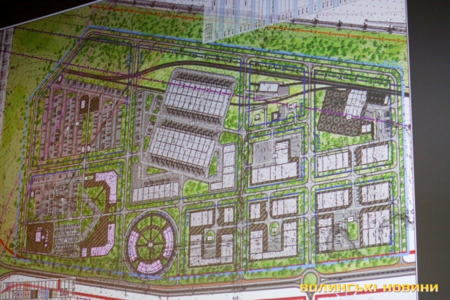 Продемонстрували також детальний план території. Так, передбачили будівництво офісного приміщення, паркінгу для вантажівок, готелю та мотелю, АЗС, вантажного терміналу, елеватора, місця для холодильників для заморожування ягід та іншої лісової продукції, а також два комплекси для заводів з виробництва будь-якої продукції.