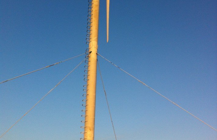 На сезон осінь-зима виручає вітряк, – каже господар. Комплектуючі для установки замовляли, а потім вдосконалювали, аби збільшити енерговіддачу. Це, насправді, не перший і не ліпший наш вітряк, – розповідає Юрій Слива. Ще у 1992 обладнав таку штуку у себе на дачі. А два роки тому встановив вітряк на прохання одного з начальників Кузнєцовської атомної станції! Зараз Юрій Слива і Махо Цінделіані розробили нову модель, що не боїться бурі. Її винт не лише автоматично повертається відповідно до зміни вітру, а й займає горизонтальне положення, у разі поривів. Таким чином вітряк захищений від поломки.