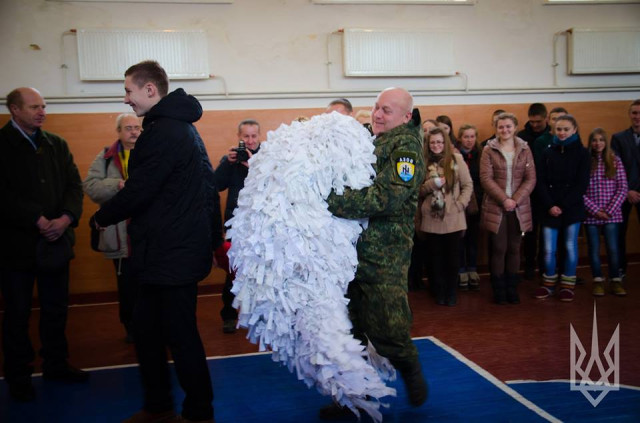Після поховання «азовця» Ігоря Сливки («Тихого»), який загинув на сході, учні ЗОШ №1 ім. І. Я. Франка Горохова Волинської області подарували представнику 3-ї сотні «Якиму» маскувальну сітку, листівки та прапор України, які були виготовлені власноручно.