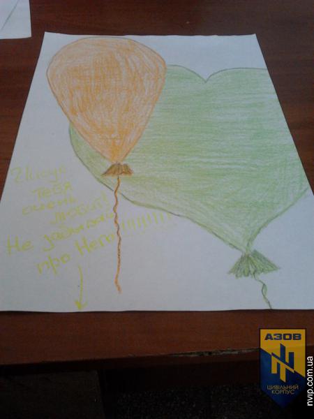 Бійці Цивільного Корпусу “Азов” найближчим часом передадуть малюнки бійцям полку “Азов”.