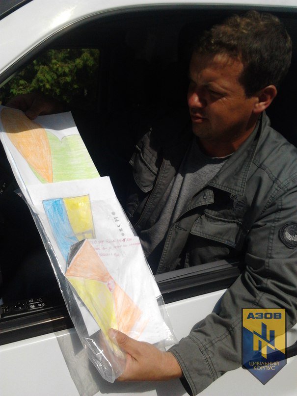 З собою він приніс малюнки сиріток для бійців полку “Азов”, та попросив передати найщиріші побажання дітей солдатам-визволителям їхнього міста від окупантів.