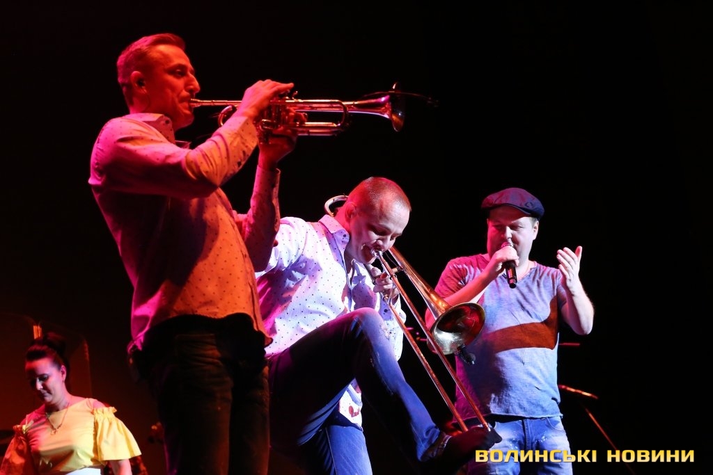З його слів, на Вінниччині поєдналося багато різних музичних напрямків та стилів – ромська, подільська, єврейська, молдовська музика. Усе це музиканти гурту спробували поєднати в одному музичному візерунку для лучан, показавши справжній подільський драйв у волинському «Промені».Тромбоніст Сергій Шамрай продемонстрував вміння грати не інструменті не лише руками а й ногами. Щоб глядачі переконали, що він грає не під фонограму, музикант виконав соло на тромбоні за допомогою ніг.Окрім запальних веселих композицій, пролунала зворушлива пісня, яку лідер гурту колись написав до ювілею своєї мами і яку тепер присвячують усім матерям, «Пісенька для мами».Окрім відомих хітів «Альо-на!», «Вчителька», «Алкоголізм» та інших виконали пісню «Волошки», яка досі не лунала на концертах і на яку лише напередодні зняли новорічне відео.