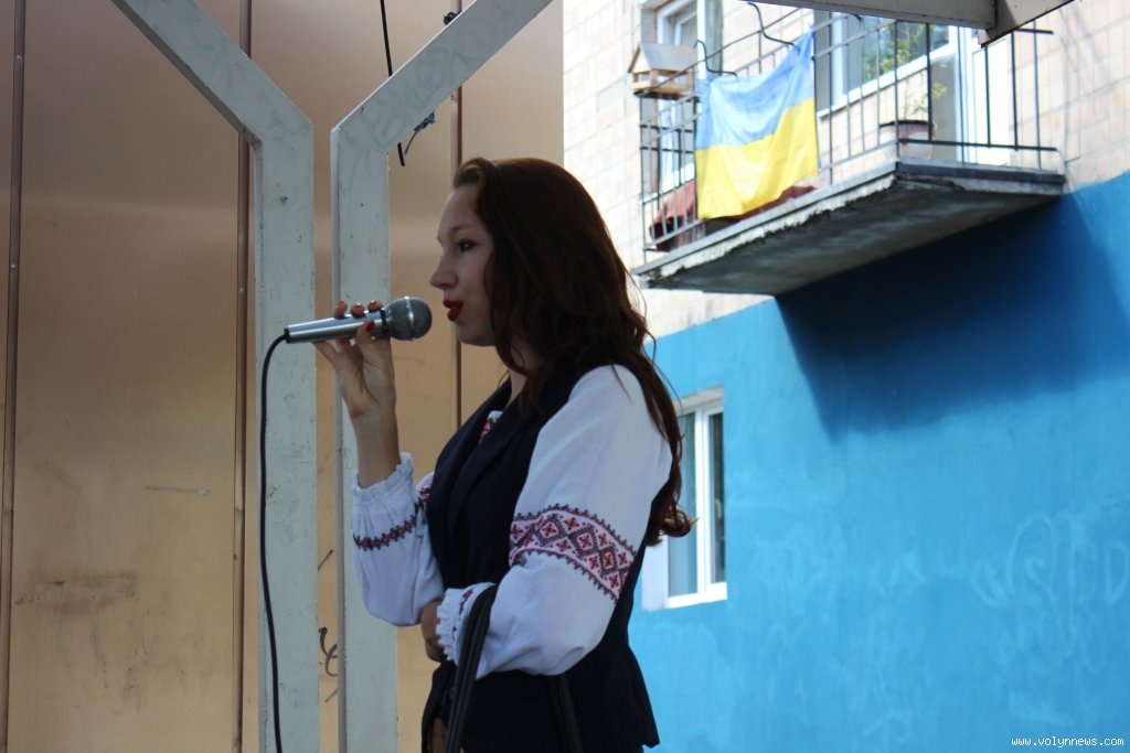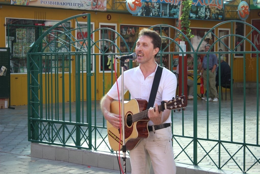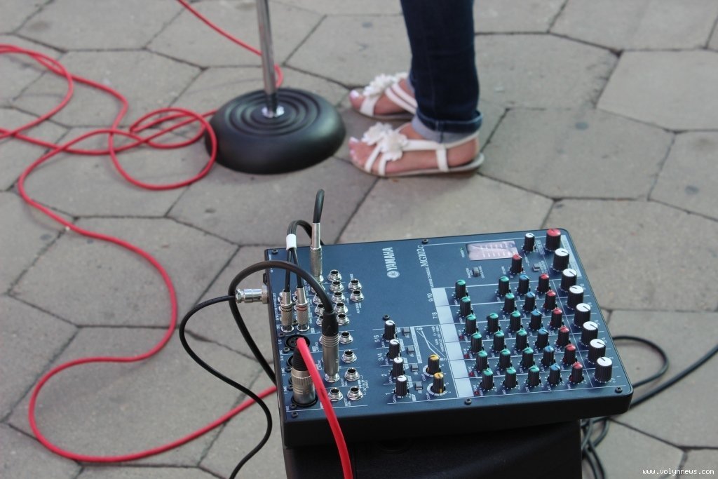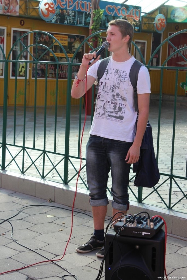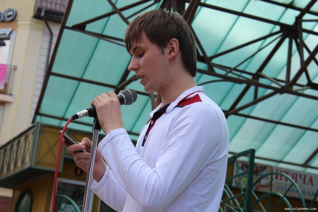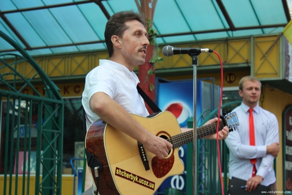 Музичне вітання для лучан підготував виконавець авторської пісні Юрій Щербик. Він виконав композицію присвячену Луцьку. Почувши звуки гітари, глядачі почали активно збиратися поблизу Книжкового пасажу.