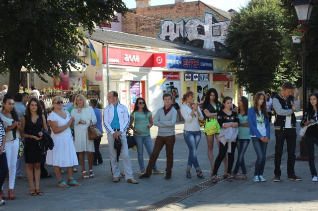 Після короткого виступу перед нечисельною публікою, учасники марафону вирушили до місця, де відбулася друга частина дійства.