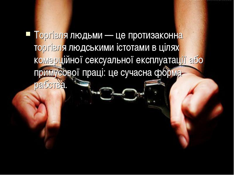Згідно з даними МОМ (Міжнародної організації з міграції) Україна – лідер серед країн східної Європи по кількості постраждалих від торгівлі людьми. Наша держава є як країною походження жертв торгівлі людьми, так і країною призначення, країною транзиту та країною, де процвітає внутрішня торгівля людьми.