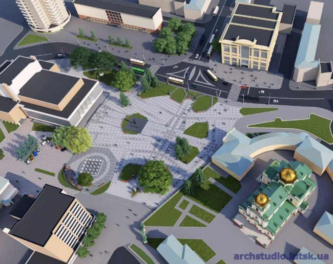Тож проектом передбачено створення фонтану, сучасно оформленої території для активного та пасивного відпочинку, рекреаційної зони з лавами для відпочинку поза межами транзитних пішохідних напрямків, оптимізація транспортних потоків з організацією автостоянок, відчутне збільшення площі зелених зон.