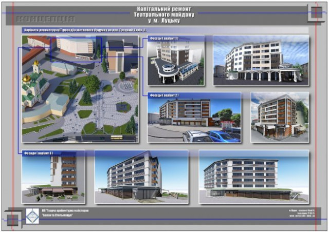 Крім того, архітектори розробили три варіанти реконструкції фасаду будинку на вулиці Градний узвіз, 2а (будинок, де знаходиться магазин «Wine Time»).