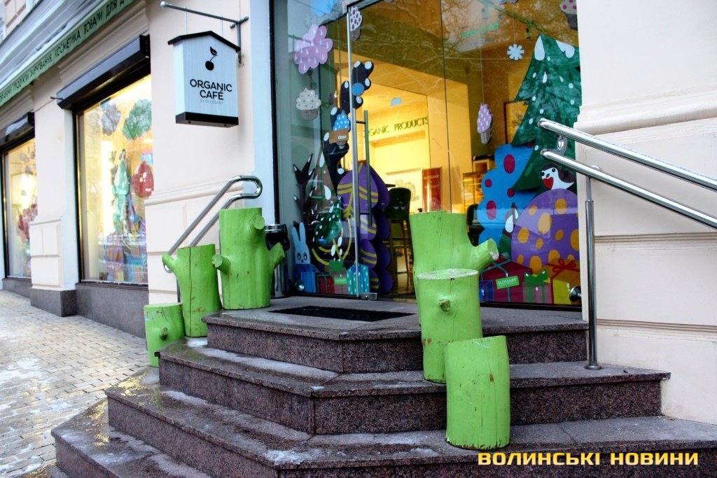 У креативності змагаються різноманітні розважальні заклади міста. Так, вегетаріанський ресторан на вулиці Гончара встановив поблизу закладу персонажів славнозвісного мультфільму «Жив-був пес», хтось ставить підводу із конем, хтось – розфарбовані пеньки, поблизу одного з магазинів на вулиці експонували своєрідний «вміст старої валізи», а ще на початку лютого поблизу багатьох закладів залишалися креативні ялинки.