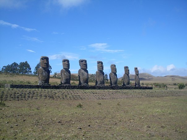 «…Усюди вздовж берега стоять рівні ряди грандіозних кам’яних ідолів, повернутих спинами до моря. Це нас дуже зацікавило, адже ми не змогли знайти жодних знарядь праці, за допомогою яких ці ідоли зроблені».