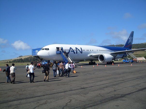 Регулярні авіарейси з Сантьяго до острова Пасхи почалися у 1967 році, їх здійснювала чилійська авіакомпанія LAN. Нині цей авіаперевізник виконує в середньому по три рейси на тиждень, і весь переліт між Сантьяго та Матавері займає трохи менше п’яти годин. Аеропорт Матавері на острові Пасхи збудували американці, зробивши його єдину посадкову смугу достатньо довгою для приземлення космічного човника Space Shuttle, а отже, і для літаків великої тоннажності. Матавері — єдиний аеропорт, здатний прийняти шатл у разі аварійної посадки в цій частині світу.