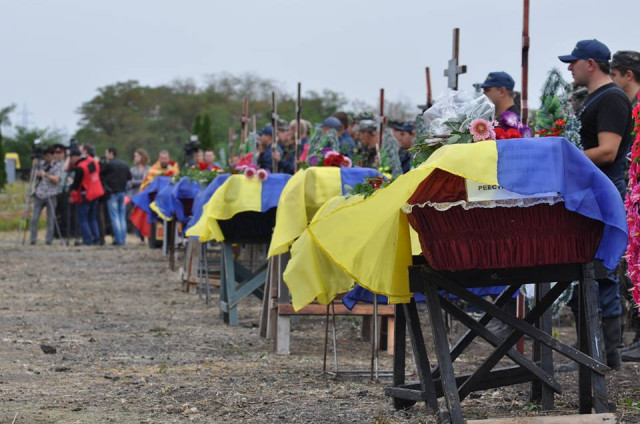 Проводжали в останній путь загиблих вояків під звуки гімну України і військовий салют. На могилі кожного встановили хрест із написом "Тимчасово невстановлений захисник України" і реєстраційним номером.