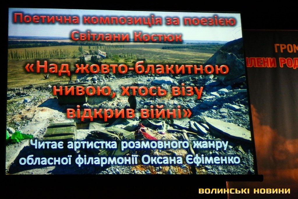 Вечір пам’яті «Пам’ятай, Україно, Героїв своїх», організований ГО «Члени родин загиблих в АТО «Надія» відбувся 28 жовтня в облмуздрамтеатрі у Луцьку.
