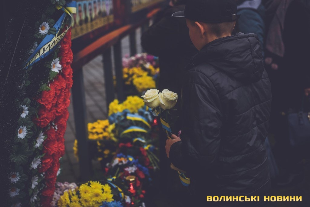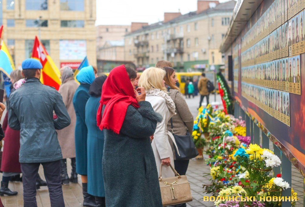 Розпочали з благословення від військового капелана отця Сергія Мельничука. Він розповів, що владика Михаїлпередає своє благословення усім матерям, дружинам, дітям, які не діждалися з війни своїх синів, чоловіків та батьків. Церква, з його слів, завжди молитиметься за наших Героїв, які віддали життя за те, щоб ми жили у мирній Україні. Він закликав наводити лад в країні, не бути байдужими і своїми вчинками довести, що ми гідні кращого життя, кращої долі для України. Для того, щоб смерть Героїв не була марною, потрібно змінювати себе, змінювати світ, починаючи з себе, жити чесно, аби зватися людиною з великої літери, людиною слова та честі. Для єднання з душами полеглих прочитали молитву.Світлини усіх полеглих волинських Героїв продемонстрували учасникам заходу, адже святим обов’язком волинян є пам’ятати про кожного сина нашого краю, чия жертовність була заради України та мирної Європи. Загиблих вшанували хвилиною мовчання.
