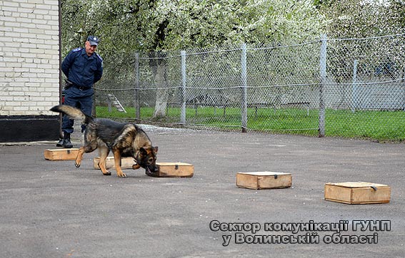 Волинські поліцейські продемонстрували можливості залучення спеціально підготовлених собак до пошуку вибухівки, зброї, наркотиків, використання їх у боротьбі зі злочинністю та охороні особливо важливих об’єктів.