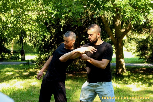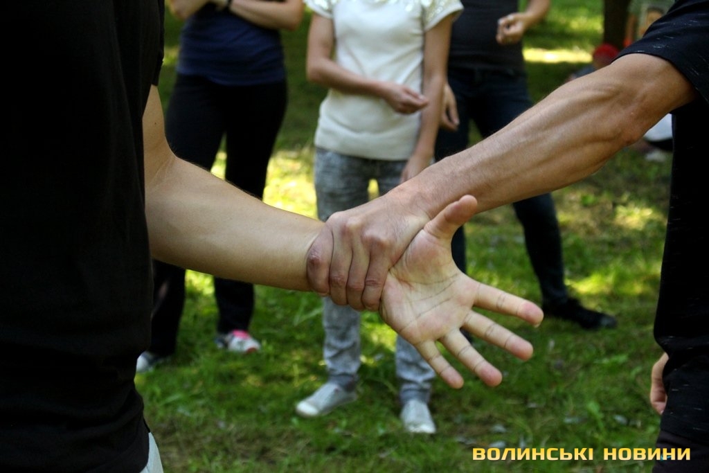 Та сьогодні мова йшла не про тонкощі бойових мистецтв, а про елементарні прийоми самозахисту, які можуть врятувати життя й здоров’я в непередбачуваній ситуації.Лучанка Наталія прийшла на заняття з донькою – ученицею старших класів. На занятті вона вже вдруге. Каже, нині час непростий, тому дівчатам, особливо юним і недосвідченим, треба вміти захистити себе. На жаль, подружок доньки загітувати не вдалося, тож прийшли тільки вдвох.Однак, вже наступного разу їм відвідати заняття навряд чи вийде – в школі розпочинається навчання, яке триватиме й по суботах. Тож чимало учасників зустрічі зауважили: варто подібні тренінги організовувати для старшокласників безпосередньо в школах, виділивши цьому певний час.