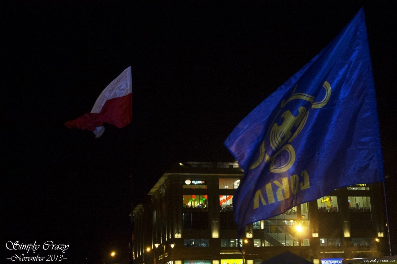 Окрім того, Сашко Положинський розповів присутнім про те, що мережею Партією Регіонів ширяться заклики їхати на антиєвропейський майдан в Київ. За це, мовляв, платять 300 гривень. Отож музикант закликав молодь таки поїхати автобусами регіоналів до столиці, взяти наперед 300 гривень, однак постояти на мітингах «за» Європу, і повернутися в Луцьк.