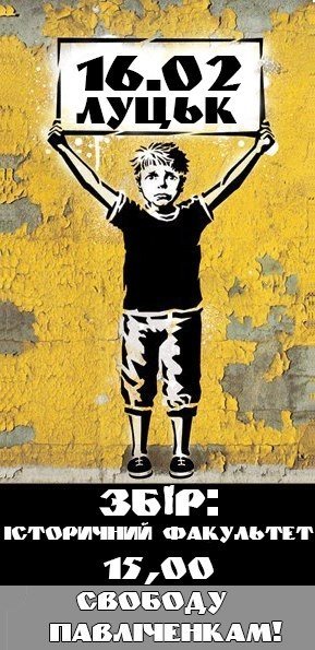 Акція на захист Павліченків розпочнеться в суботу, 16-го лютого о 15:00 в Луцьку. Збір – біля історичного факультету СНУ імені Лесі Українки. Зокрема на марш підтримки лучан запрошує лідер гурту «Тартак» Сашко Положинський.