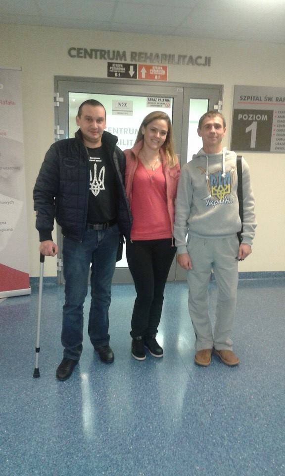 Зі слів волонтерів, Віталіка Ванюшина та Сашу Стецюка поклали в клініку Святого Рафала. "Що казати - жоден запах там не є лікарняним. Жодна медсестра не бігала за нами з лементом, де наші бахіли. Готель першого класу та й годі, - магнітні карти для входу в кабінети, палати-кімнати, ліжко з таким функціоналом, що хоч в космос. І туалетна кімната, пепепрошую, не дає під дих хлором і чимось до кольок сирітським і обділеним. Ага, це теж важливо... Віталіку почали розробляти руку - поки що рано казати, коли і яким буде результат: чи досить буде щоденних вправ і кількамісячного курсу масажів, чи потому ще операція. Шлях довгий, а хлопець знов на війну рветься... Віталіка поклали в палату до Ігоря з Тернополя, якого ми з Олег Савчук зустріли ще у жовтні, коли їздили в клініку в "розвідку". Ігор - майданівець, був у оточенні Яроша. Йому після поранення на Сході відмовились виймати осколки з голови в Україні. На момент першої зустрічі він був після операції, зі швом через всю голову, ледь переступав по біговій доріжці, ледь говорив самими лише кутиками вуст. На сьогодні ж прогрес очевидний - говорить значно краще, біля нього є його сестра. Так що є компанія нашому Вітальці на період адаптації - бо Ігорю скоро додому", - розповідає волонтер.