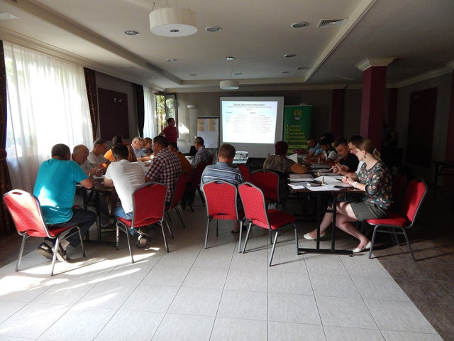 Волинян на люблінській землі у місті Пулави тепло зустрічали працівники проекту з польської сторони: асистент координатора Павел Копіньскі та спеціаліст по організації навчання Малгожата Серока. Програма навчально-демонстраційного курсу була побудована таким чином: два дні перебування були присв’ячені презентаціям польських фахівців з питань садівництва, а решта днів – ознайомленню з кращими садівничими господарствами регіону. Свої презентації представили: Павло Суховоля, дорадник з питань рослинництва Люблінського центру сільськогосподарського дорадництва в Коньсковолі (крім того, Павло сам є власником 12-гектарного яблуневого саду) та Збігнев Шафран – керівник районної дорадчої служби в Ополі Люблінському. Тематика презентацій стосувалась застосування правил інтегрованих систем захисту в садівництві, у тому числі при вирощуванні яблуні, вишні, малини та полуниці.