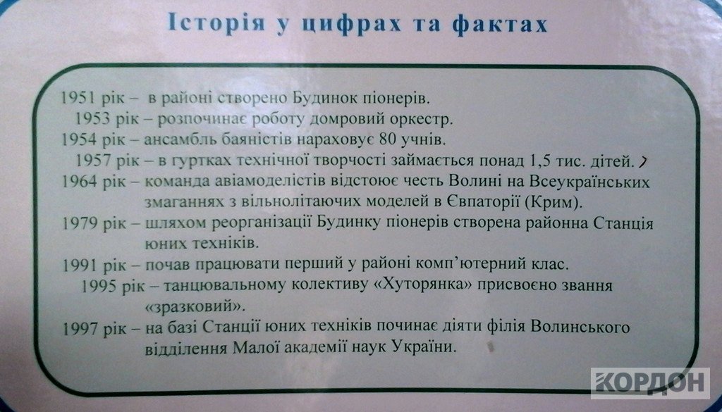 Однокласники Олег Смізюк та Віталій Сухецький, 1973 рікВіктор Король та Вадим Сухецький готують до запуску авіамодель на стадіоні “Колос”, 1978 рікРайонні змагання з авіамодельного спорту, 2006 рікВихованці судномодельного гуртка, 2008 рікСтарт Чемпіонату області з судномодельного спорту, озеро “Сомен” (Туріський район), 2010 рікЗаняття в Станції юних техніків, 2016 рік