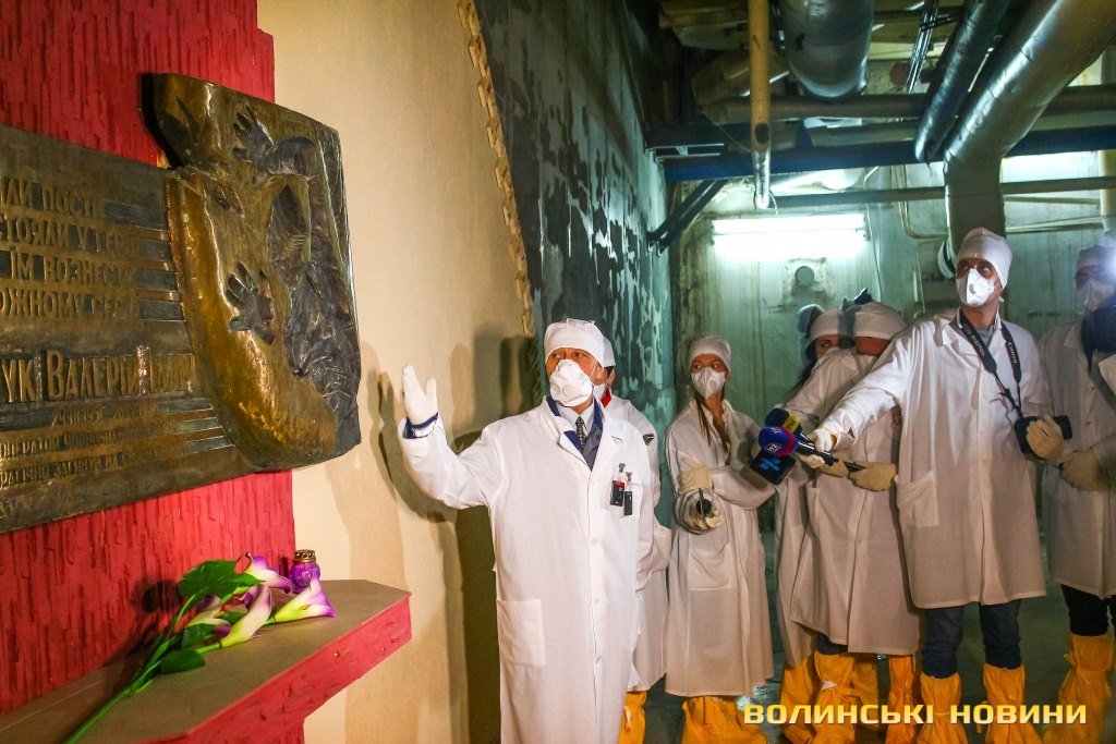 Круті металеві сходи ведуть до приміщення, де на стіні між третім та четвертим енергоблоками розмістили на пропозицію колективу станції меморіальну дошку Валерію Ходимчуку, старшому оператору ЧАЕС, який 26 квітня трагічно загинув на своєму посту. «Не залишили пости, мужньо стояли у герці, пам’ятник їм вознести треба у кожному серці», - йдеться на меморіальній дошці. Родичі загиблого проживають у Києві та Мінську, а його дружина щороку 26 квітня приїздить з Києва, аби покласти квіти до цієї символічної дошки. У 1986 році вона також працювала на ЧАЕС. Тіло загиблого так і не вдалося відшукати під завалами четвертого енергоблоку. Він був старшим оператором головних циркуляційних насосів четвертого енергоблоку та отримав завдання перевірити обладнання, коли розпочалися випробування, що й призвели до катастрофи на енергоблоці. В результаті аварії він лишився під завалами. Під час кількох безуспішних спроб пошуків тіла першої жертви катастрофи опромінення отримали кілька десятків працівників станції, тож пошуки вирішили припинити. Ще понад тридцять чоловік, які отримали опромінення у перші дні катастрофи, померли у клініці у Москві.«Персонал Чорнобильської АЕС виконував своє завдання, лишаючись на робочих місцях. Вони були в епіцентрі всіх подій. Тому ми повинні завжди пам’ятати про них – вони запобігли подальшій ще страшнішій катастрофі, зробили усе можливе, як персонал станції, так і пожежники, які прийшли першими, щоб загасити наслідки аварії»,- наголошує Станіслав Шекстела.