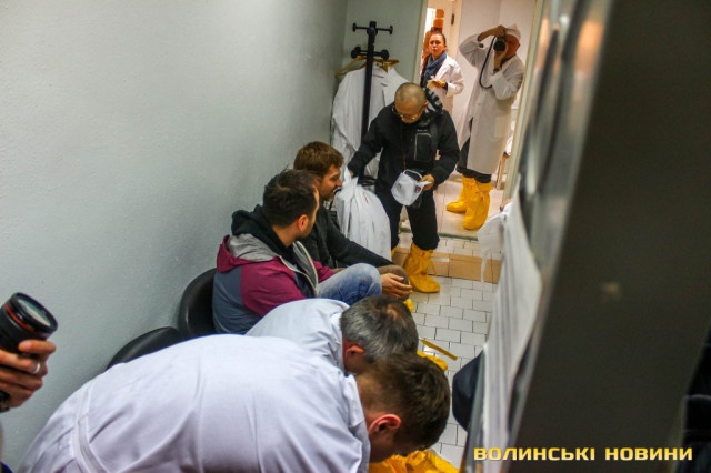 Подбавши про необхідні засоби індивідуального захисту – високі бахіли, халат, рукавички та респіратор, відвідувачі можуть пройти у зону суворого режиму.