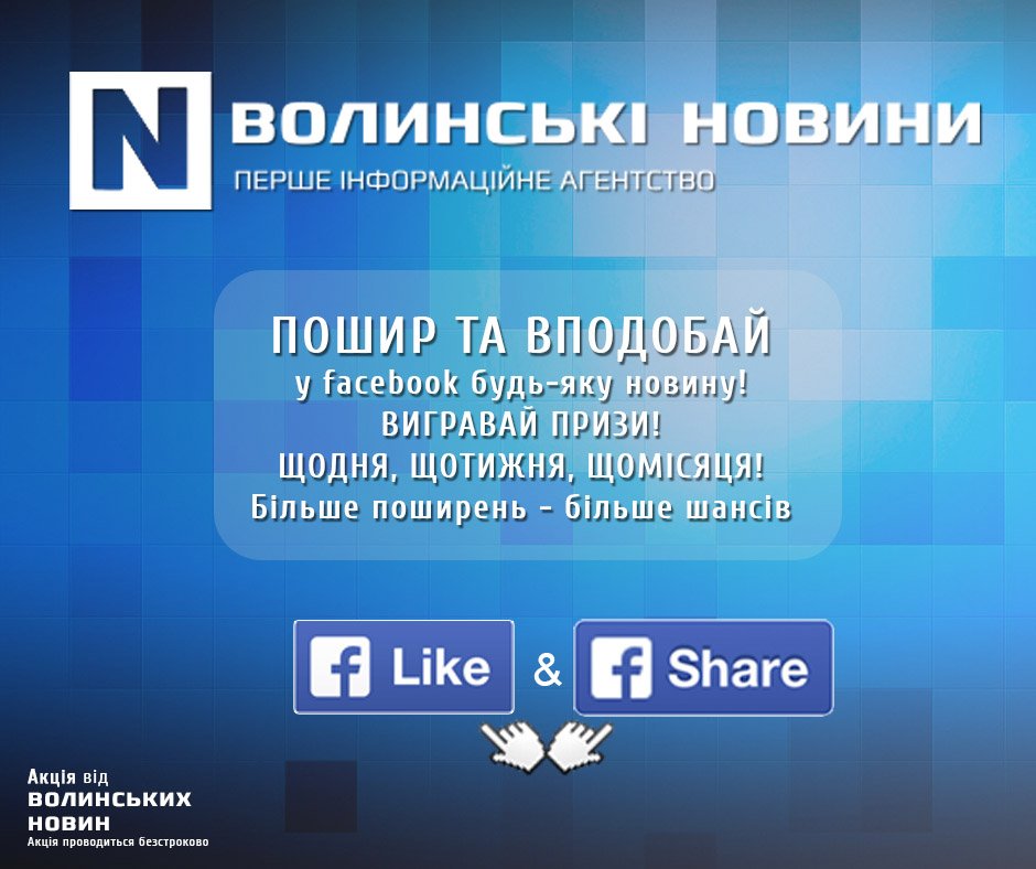 Для участі в розіграші підпишіться на сторінку Волинських Новин у Facebook, натисніть «Подобається» (або іншу реакцію) на будь-якому дописі та поширте його на власній сторінці у соцмережі.