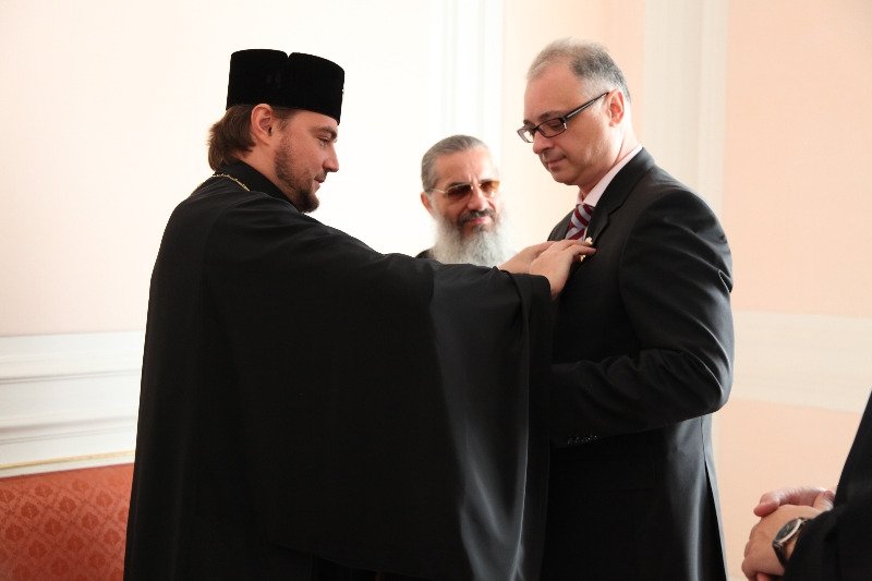 Від імені Предстоятеля УПЦ Блаженнішого Володимира Митрополита Київського і всієї України владика Олександр вручив Послу орден УПЦ 1025-річчя Хрещення Київської Русі.
