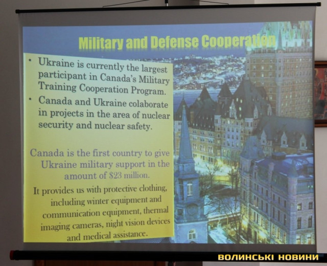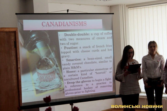 Презентацію, присвячену Канаді та канадсько-українській співпраці, продемонстрували студенти.Надзвичайний та повноважний посол Канади в Україні Роман Ващук зазначив, що вдячний університету, який створив майданчик для важливої праці із вивчення Канади. Він розповів, що Канада останніми тижнями додала певні елементи пакету допомоги Україні, який тепер налічує 568 мільйонів канадських доларів, завершується підготовка нової позики для підтримки українського бюджету. Канада допомагає Україні як проектами з економічного та демократичного розвитку, підтримки децентралізації, а також підтримує Збройні Сили України.
