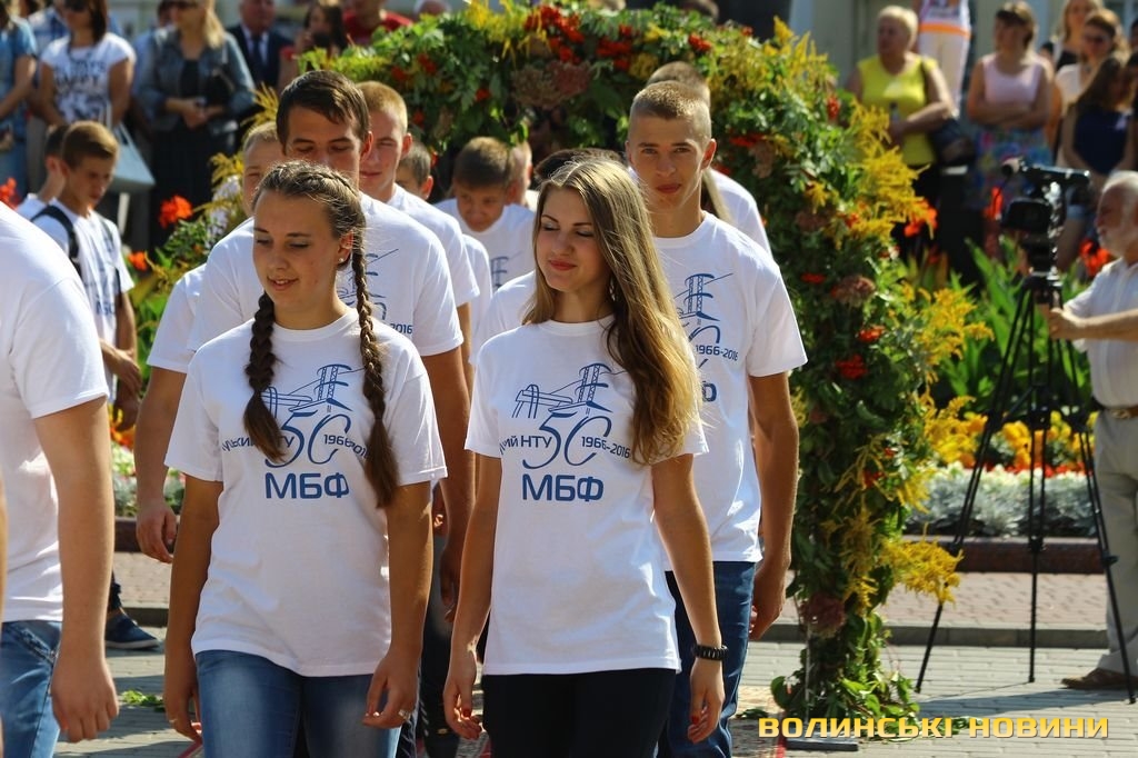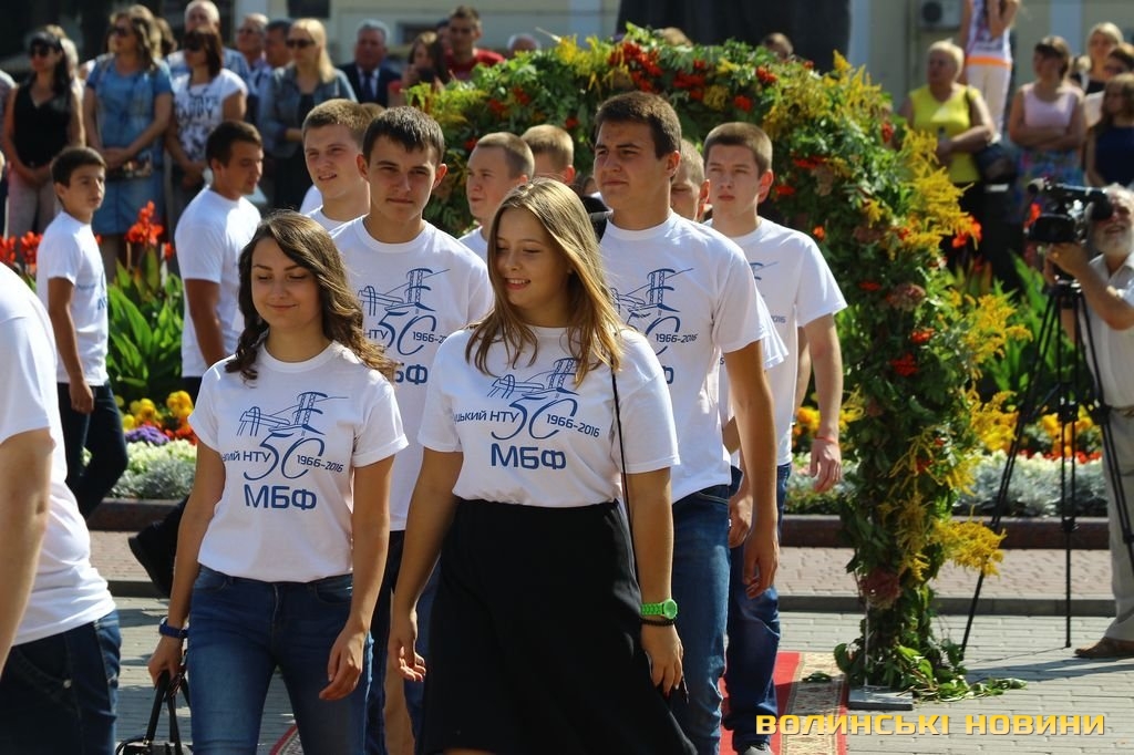 Привітав присутніх митрополит Луцький і Волинський Михаїл, який зауважив, що молоді люди зробили виважений і патріотичний крок, прийнявши рішення здобувати освіту саме в Україні, і «не піддались на рекламу» зарубіжних вузів. Священнослужителі помолились за новоспечених студентів та освятили їх святою водою.Ректор ЛНТУ Петро Савчук привітав гостей дійства та колег і звернувся до «першачків», зауваживши, що цьогорічне свято – особливе, адже 2016 року університет святкує свій п’ятдесятирічний ювілей. Відтак, студенти назавжди залишаться ювілярами.«Хочу побажати вам реалізувати здібності, мрії, наміри, щоб у стінах нашого вишу ви стали конкурентними висококваліфікованими фахівцями. Розвивали нашу неньку Україну, зміцнювали її, робили могутнішою», - зазначив Петро Савчук.