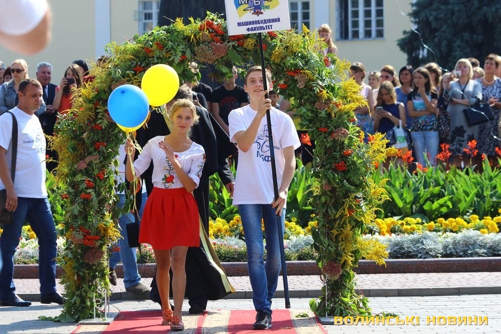 Попри досить спекотну погоду, на Театральному майдані міста зібрались сотні людей – це не лише студенти вузу, але і їхні батьки, друзі та владці. Під квітковою аркою пройшли по черзі представники всіх факультетів ЛНТУ, які цьогоріч розпочали навчання у виші. Серед них і слухачі військової кафедри, яку у навчальному закладі відкрили цього року.