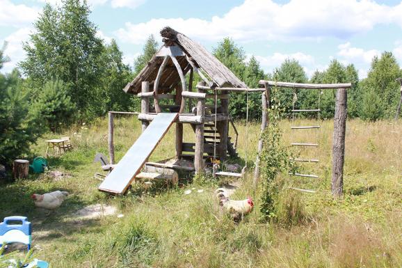 Власними руками роблять не тільки будинок та піч, а й меблі, що їх Віталій майструє з дерева. Розводять і бджіл, для цього на своїй садибі чоловік порозставляв видовбані колоди — імітацію вуликів. Коло будиночка власними руками збудований дитячий майданчик, який за своєю оригінальністю набагато кращий за наші міські.
