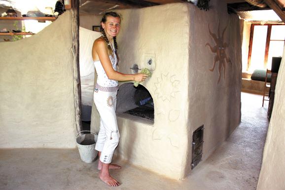 Зараз усередині будинку відбувається невеликий косметичний ремонт, подружжя разом із сином гарно розмалювали стіну на веранді квітами, а всередині будинку також стіни та піч з виліпленими та розфарбованими зображеннями. На другий поверх прямує драбина, по якій їхній маленький син із задоволенням добирається до своєї кімнати, що обвішана пучечками свіжовисушених і таких пахучих трав.