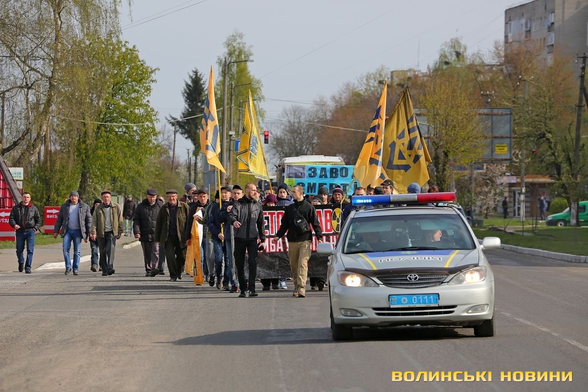 Близько 10 години ранку колона людей пройшла містом, скандуючи «Місто вставай, завод смерті закривай!». Згодом невдоволені ковельчани рушили до перехрестя міжнародної траси «Київ – Ковель – Ягодин», що веде до Варшави, та перекрили рух в районі повороту на село Люблинець.