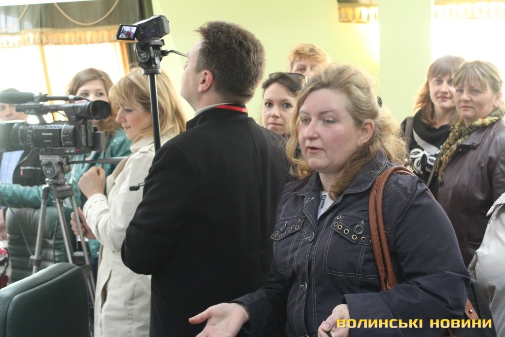 Виступили також представники ініціативної групи. Так, Неоніла Слюсар, голова профспілкового комітету, яка, з ї слів, була звільнена із порушенням законодавства у лютому цього року, оголосила вимоги працівників. Вона розповіла, що з 2011 року, відколи підприємство очолив Олександр Киричук, борги підприємства значно збільшилися, що вона пов’язує не із подорожчанням енергоносіїв, а з господарською діяльністю керівництва. Працівники запрошували міського голову прийти на збори трудового колективу ще торік.