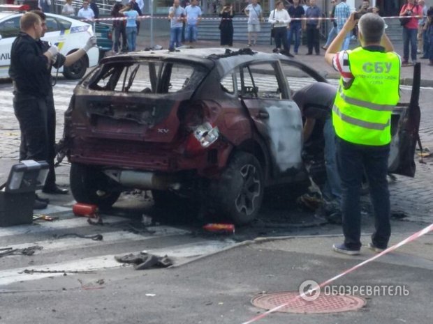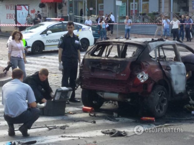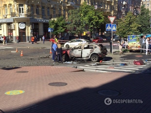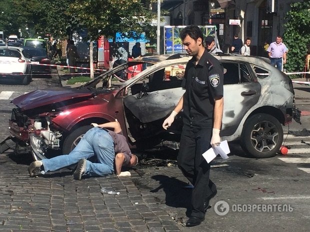 У мережі з’явилося відео загибелі журналіста.Прокуратура Києва вважає попередньою причиною вибуху автомобіля спрацьовування вибухового пристрою (зі слів радника міністра внутрішніх справ Зоряна Шкіряка, в машині встановили безоболонковий саморобний вибуховий пристрій потужністю від 400 до 600 грам у тротиловому еквіваленті).