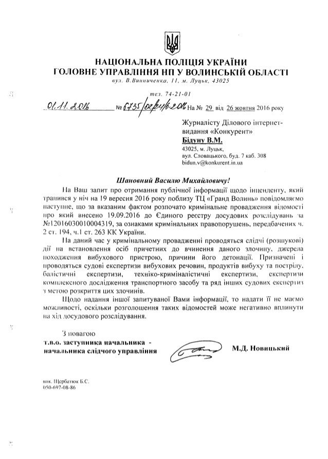 Про це повідомили у Слідчому управлінні ГУ НП у Волинській області у відповідь на запит видання "Конкурент".
