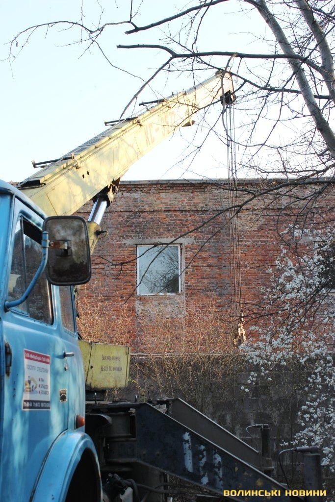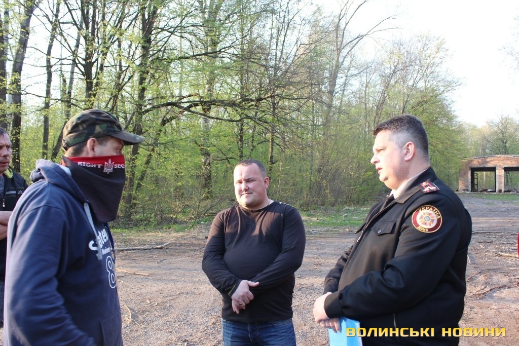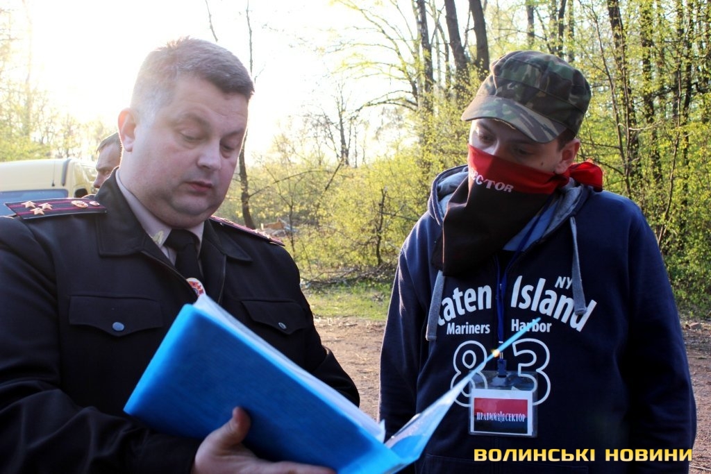 У робітників поцікавилися, хто їм доручив це робити. Ті відповіли, що доручення дав якийсь Юрій. Чоловіка викликали на місце події, де він продемонстрував представникам Правого сектора прострочену накладну за 21 березня, згідно із якою він має право перевозити будматеріали. Оригінальність документу викликала сумнів у активістів, до того ж жодних інших документів у чоловіка не виявилося. Він, мовляв, усно домовився із працівниками. Також Юрій стверджував, що саме працівники Управління ДСНС просили його перевезти ці будматеріали звідси у Рожище на базу ДСНС. Невдовзі на місце події прибув начальник відділу ресурсного забезпечення УДСНС України у Волинській області Сергій Клєц, який підтвердив усну домовленість із чоловіком. Однак, жодних укладених контрактів із виконавцями робіт він показати не зміг.