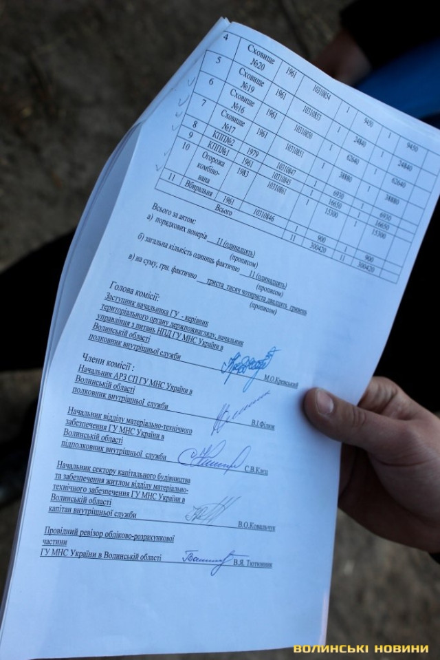 З його слів, він, приїхавши на місце інциденту, не взяв із собою усіх наявних документів, решта яких зберігається у бухгалтерії аварійно-рятувального загону. Він розповів, що територію колишньої військової частини, що нині, як матеріально-технічний склад, підпорядковується Управлінню ДСНС, наразі ніхто не охороняє, тому що надзвичайникам скоротили штат. Полковник запевнив, що, отримавши вказівку з міністерства про скорочення, надзвичайники вирішили вивезти усе майно на зберігання у інші частини та продемонстрував документ про списання будівель від 2007 року.