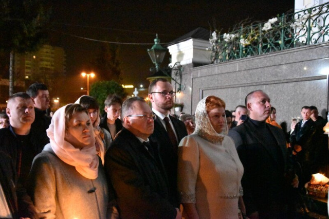 Нічна Літургія розпочалась із Собору Всіх Святих Землі Волинської та луцького кафедрального собору Святої Трійці. Посадовці разом із сотнями лучан раділи світлому святу, не упустивши нагоди привітати присутніх.