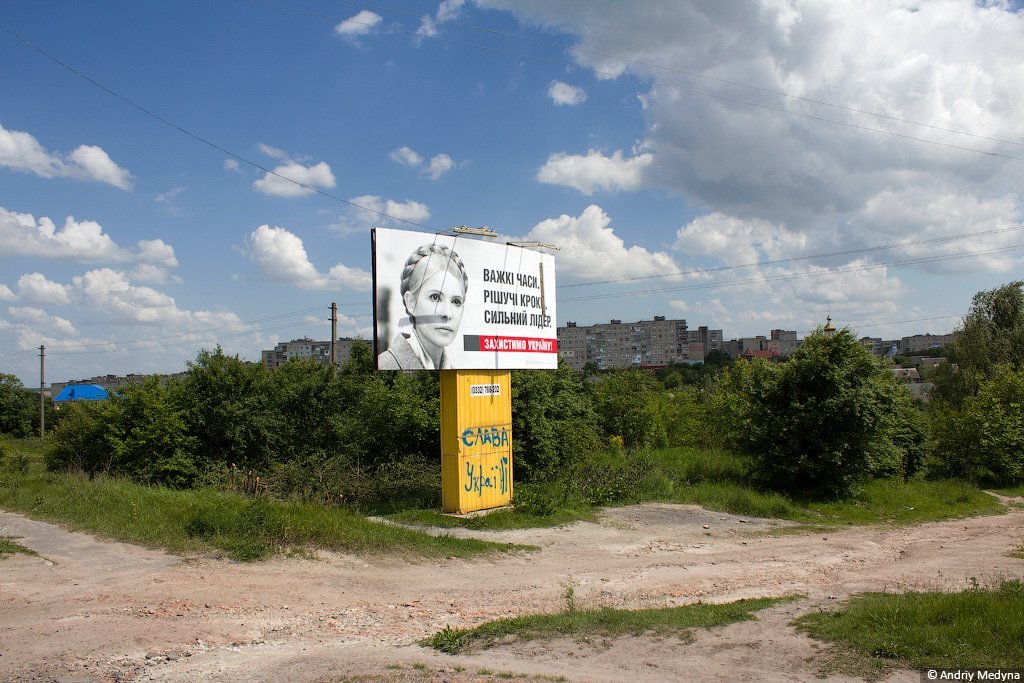 У суботу, 24 травня в Нововолинську на вулиці Луцькій зафіксовано рекламні біг-борди, які можна трактувати як агітацію. Так, протягом травня це були агітаційні біг-борди на підтримку Юлії Тимошенко. На них зображені відомі мешканці міста, представники певних середовищ та організацій (Борис Бабійчук, Аліна Ярошенко, Віктор Тарасенко), які агітують за вищезгаданого кандидата. На біг-бордах містився заклик до виборців: «Я проти олігархів, корупції та війни! 25 травня я голосую за Тимошенко!». На цих біг-бордах були вказані вихідні дані, зокрема відомості про відповідальних за друк друкарню. До слова, така специфічна , прив’язана до місцевості, форма агітації була виявлена лише у цьому місті.